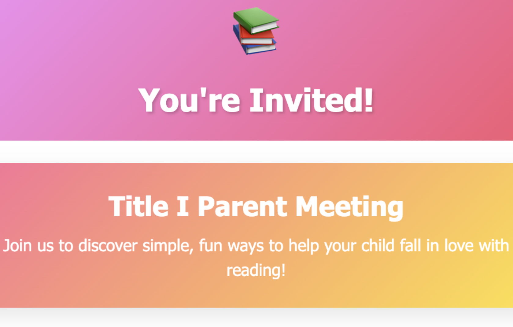 Hope to see you at our "drop in" Title I Parent Meeting at the Open House.